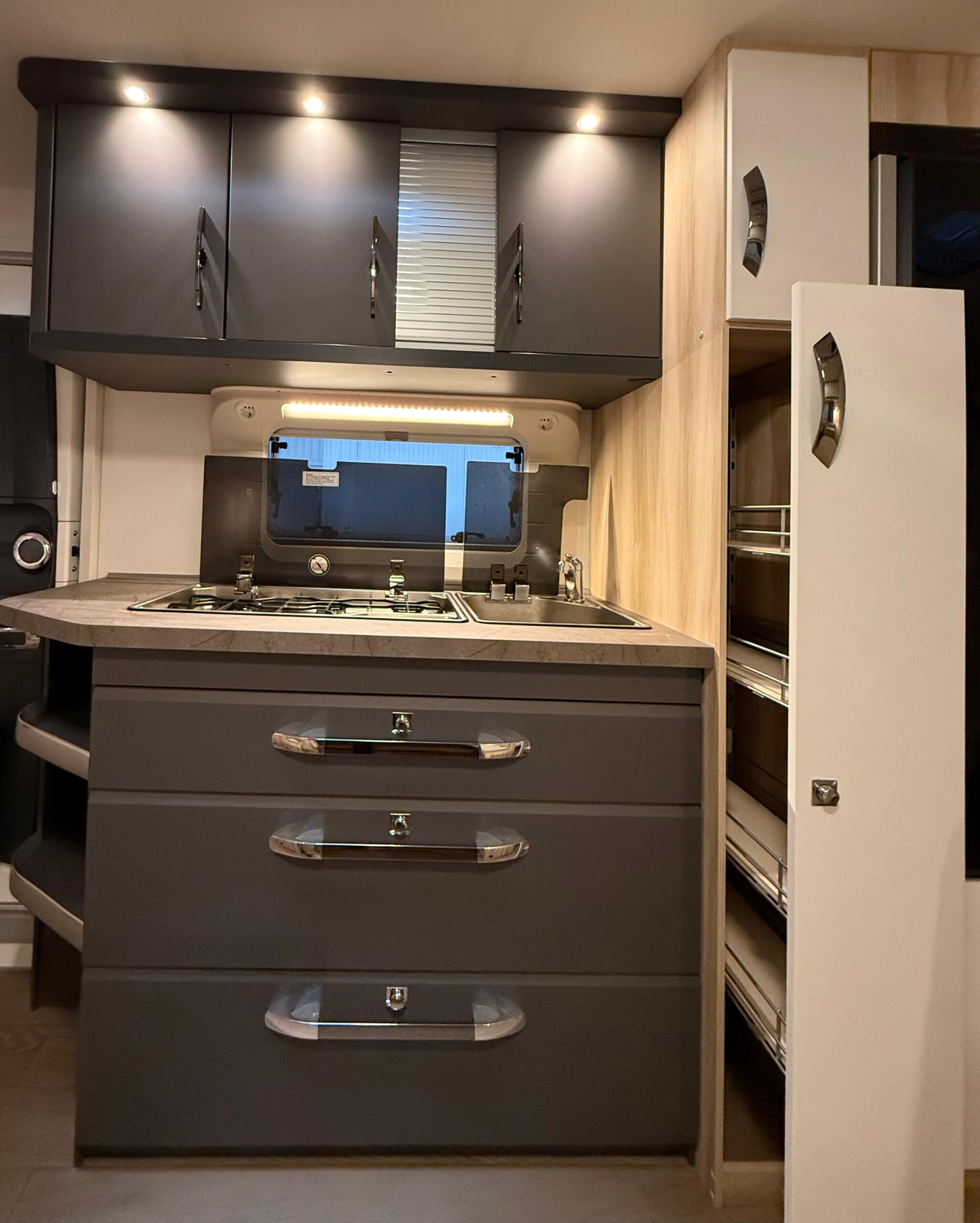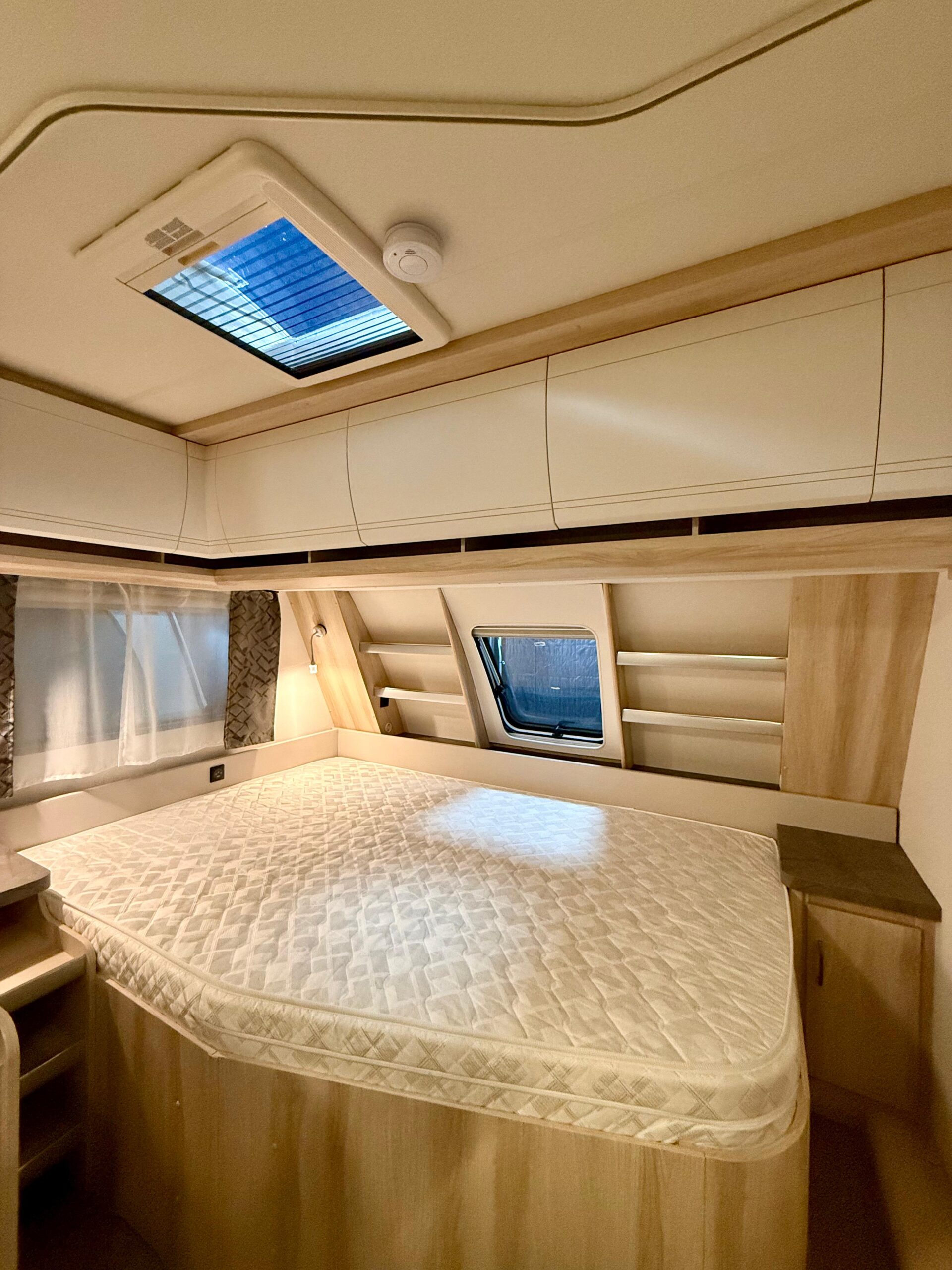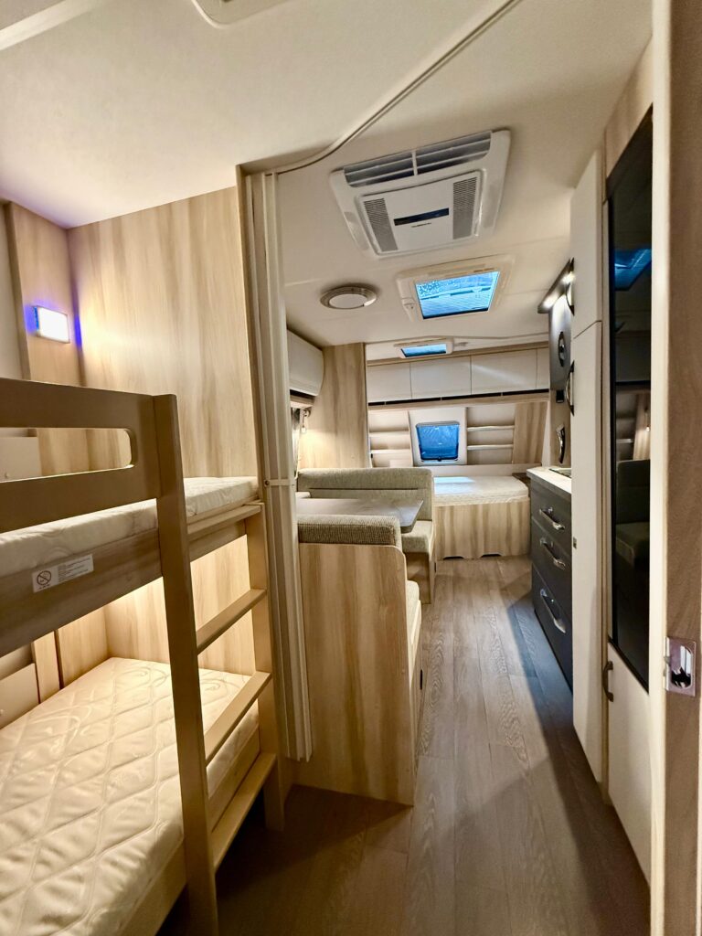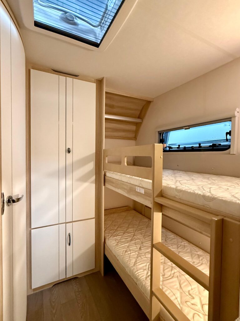 ✔ Ontzettend veel opbergruimte in zowel het leefgedeelte, de slaapgedeeltes als de douche.